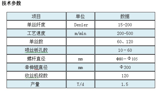 設(shè)備用于滌綸、丙綸、錦綸粗旦纖維工業(yè)絲的生產(chǎn),該絲主要用于漁網(wǎng)線、繩索、高密度濾布、頭巾、緍紗、面罩、墊肩、遮陽布等